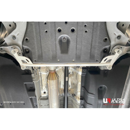 Распорка заднего подрамника Kia Sorento MQ4 (2020-2023) усиливает жесткость шасси автомобиля, уменьш..